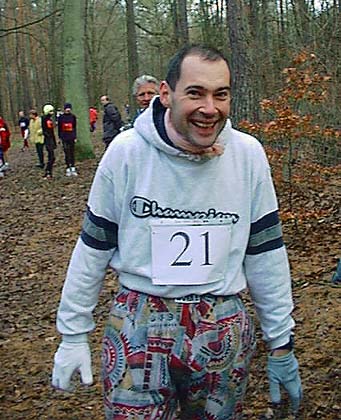 Burkhard Schikora ist schließlich nach 13,8 km und vielen Hügeln und Bergen als Sieger am Ziel |
